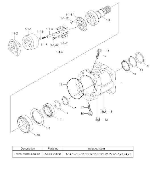 XJDD-00683 XJDD00683 Seal Kit Excavator Final Drive For HYUNDAI R140W7 R140W7A Images |